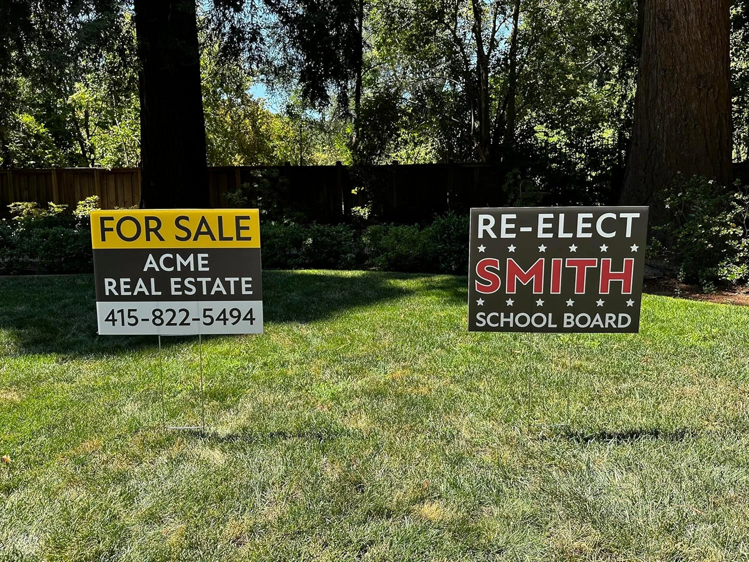 • Vertical stacking of corrugated signage results in using less horizonal space, particularly useful when there is limited space for placing yard signs